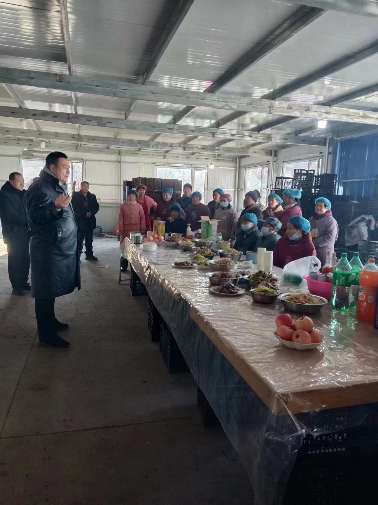在生產車間內召開的全體員工大會中,鄭氏砂藝執行董事長鄭鐵軍總結了一年來工坊的發展情況,同時對即將到來的2023年給予美好的祝福。鄭鐵軍董事長表示:“2022年,我們做了很多事情,硬件方面新建了冷庫,引進了設備,建立了化驗室,修整了路面和部分房屋等重要工作,讓大家的工作環境得到了很大的改善,使企業的生產效率得到了提高。2023年,工坊還要繼續引進設備,建設車間,擴大生產經營,為我們的父老鄉親提供更多的就業崗位。這一年,在大家的共同努力下,我們在安全生產方面、班組管理方面和質量控制方面都沒有出現太大的問題,這是我們值得慶祝的地方,也是我們需要保持的地方。新的一年意味著新的起點,也面臨著新的機遇和挑戰,希望大家再接再厲、團結一致,認真提高專業技能,為企業的發展貢獻自己的力量”。金土地合作社理事長盧金龍表示:“2023年是全新的一年,希望大家腳踏實地,共同努力,迎接新的輝煌”。