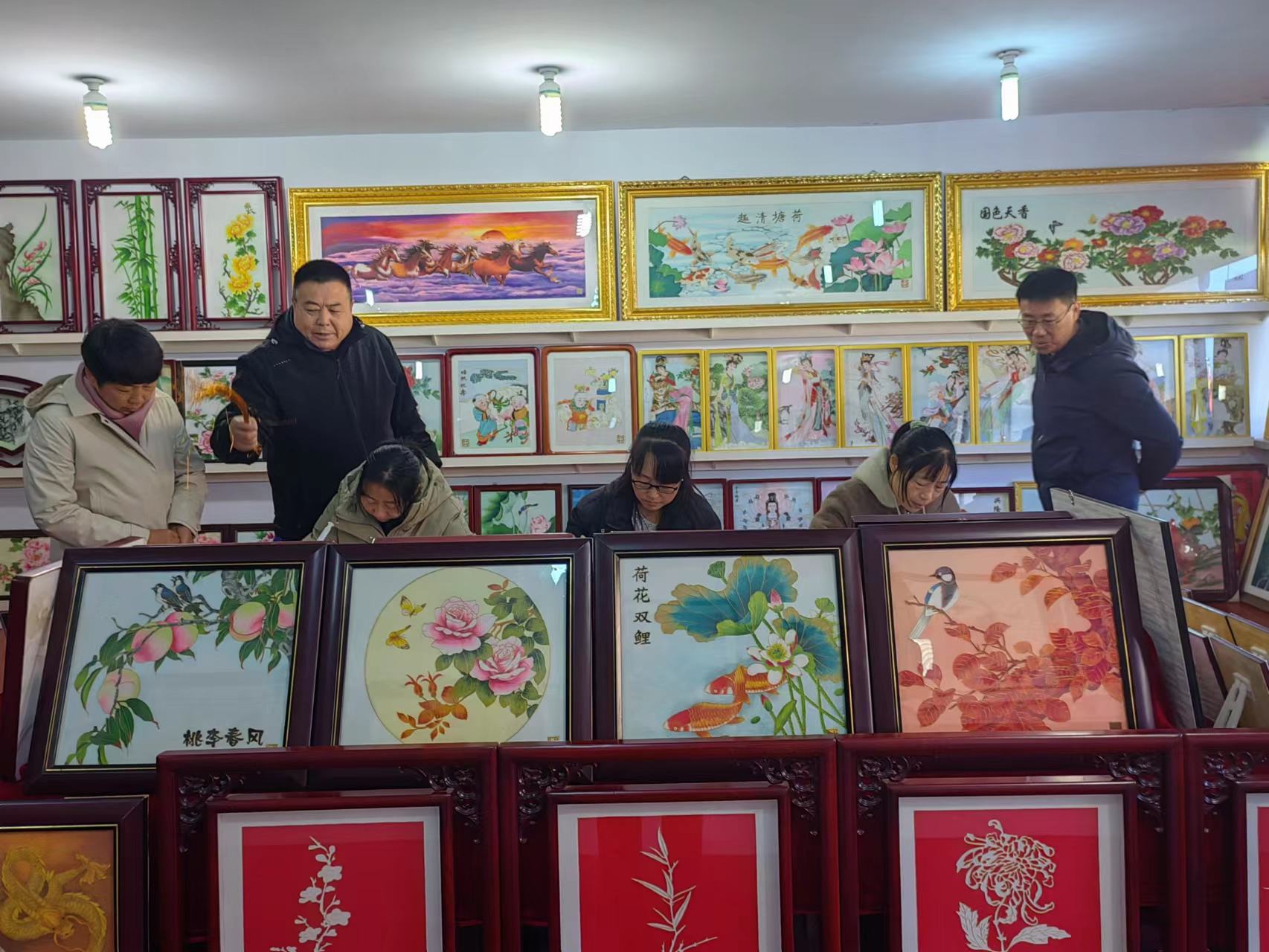 丁宇超副部長一行在鄭氏砂藝董事長鄭鐵軍的陪同下,逐一參觀了鄭氏砂藝展覽館和文化名家工作室,觀看了技師的砂畫制作手法,以及砂畫主要材質和制作步驟,對鄭氏砂藝傳統技藝頗為驚訝和感嘆,贊嘆一幅幅栩栩如生的砂畫作品,就是我們的畫師用一雙雙纖纖玉手這樣一點一點地制作完成的,簡直是妙手回春,點砂成金。
