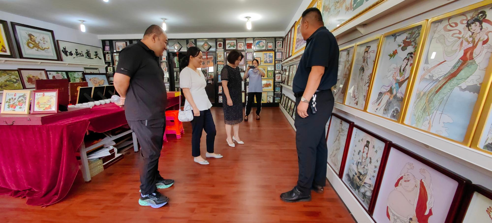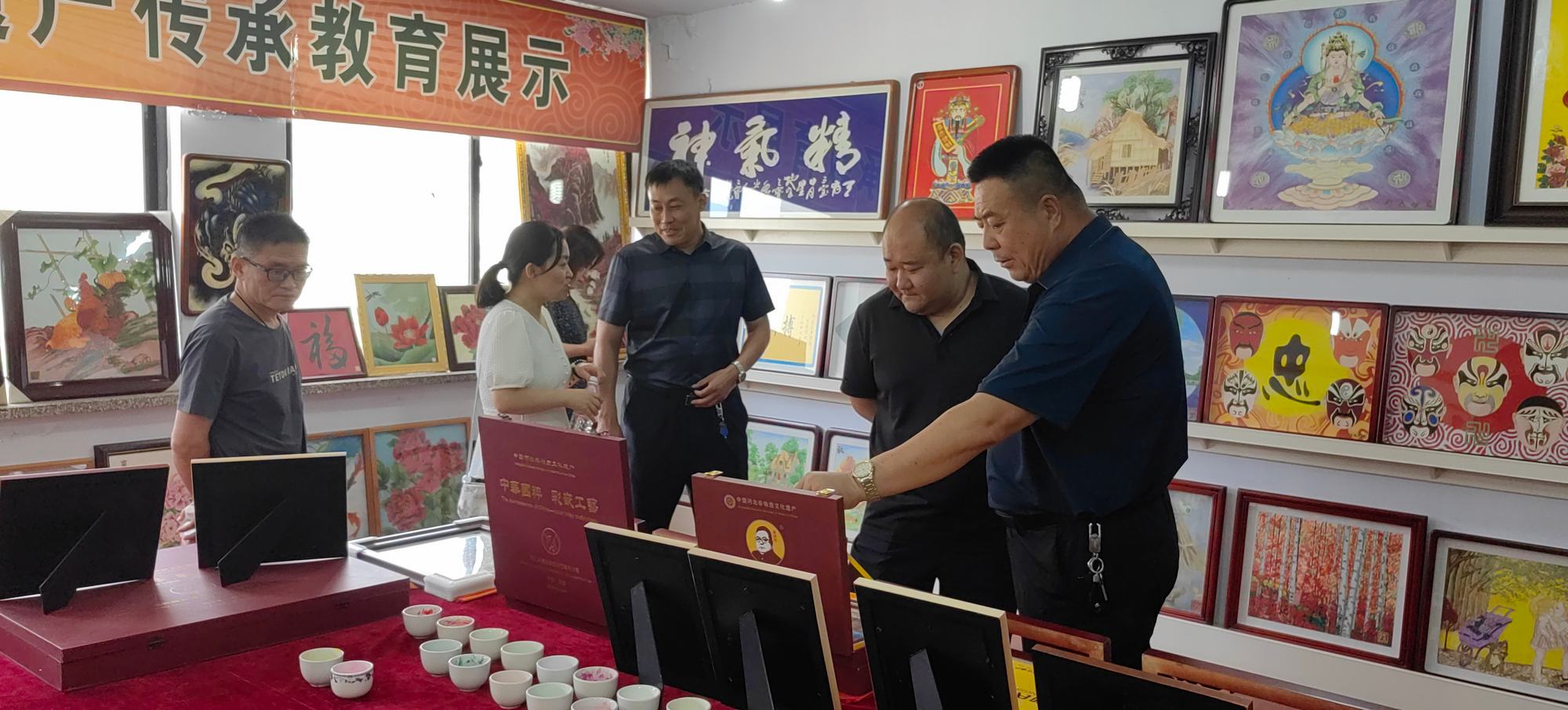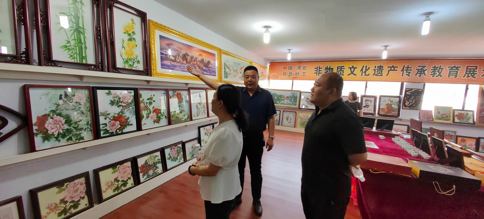 2024年7月9日,避暑山莊博物院副院長研究員蔣秀丹、承德市文物局博物館科科長楊坤、市文物局博物館管理科白彬、避暑山莊博物院文物典藏部主任副研究員沈云偉、興隆縣旅游和文化廣電局黨組成員高子營、興隆縣博物館館長閆偉生對興隆縣鄭氏砂藝非遺博物館開展調研考察,考察團在鄭氏砂藝董事長鄭鐵軍的陪同下分別參觀了鄭氏砂藝(畫)生產車間、企業文化展館和鄭氏砂藝非遺博物館,考察團對鄭氏砂藝(畫)技藝、鄭氏砂藝非遺博物館面積、館藏文物及配套設施進行了實地參觀考察。