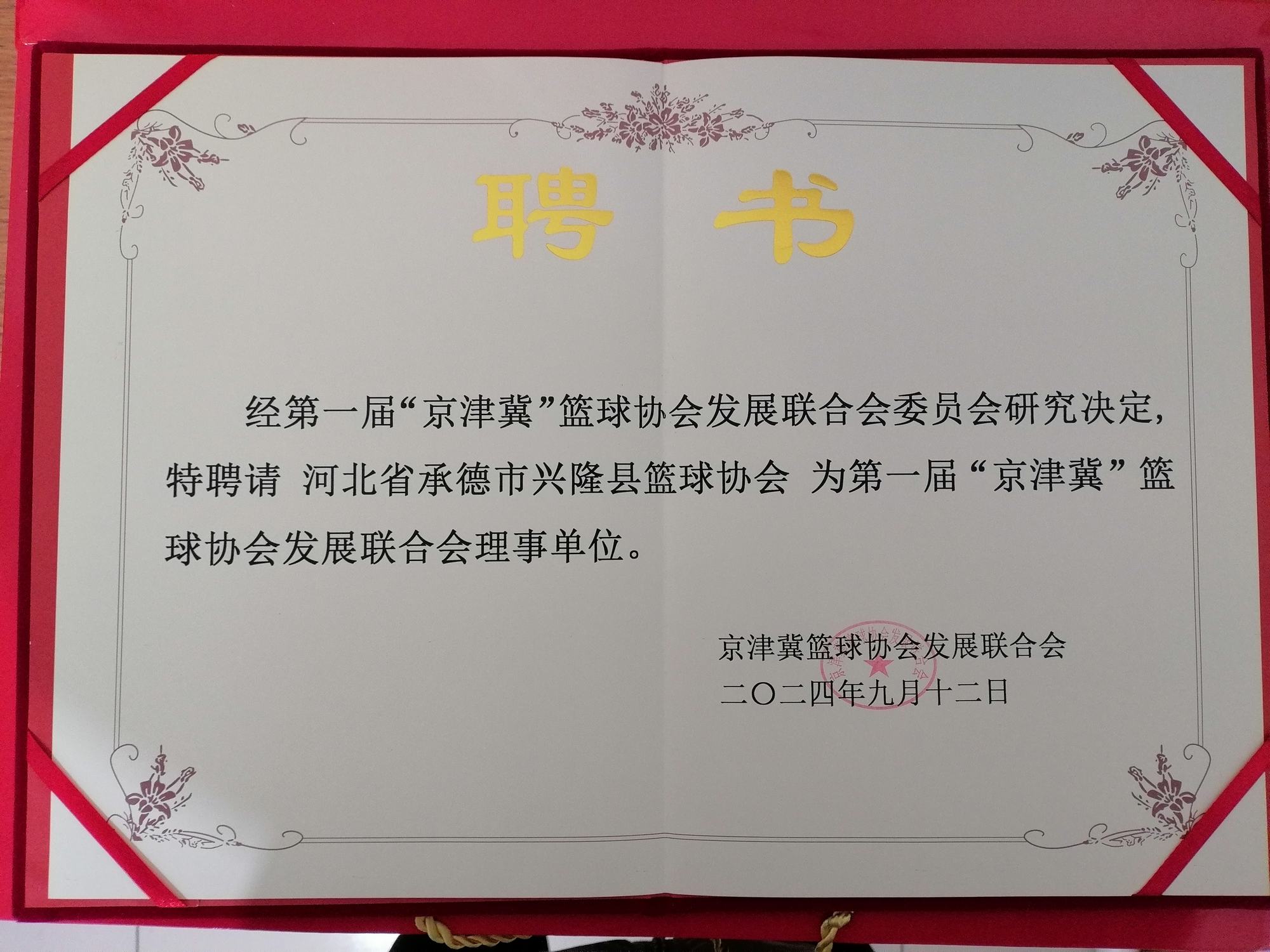 2024年9月12日上午,第一屆“京津冀”籃球協會發展聯合會成立大會于在北京市懷柔區雁棲湖勝利召開,參加會議的有北京市通州區籃球運動協會主席曹國虎、北京市懷柔區籃球協會主席李鳳亮、北京市大興區籃球協會主席張海忠、北京市平谷區籃球運動協會主席張亞東、北京市門頭溝區籃球協會主席王會、北京市密云區籃球運動協會主席王懷平、北京市西城區籃球專業委員會關雨、北京市東城區籃球運動協會主席董瑋、北京市朝陽區籃球運動協會主席劉杰、北京市房山區籃球運動協會主席馬德亮、北京市懷柔區神韻訓練基地王潘磊、天津市武清區籃球協會主席楊瑞偉、天津市西青區籃球運動協會主席趙犀、天津市東麗區籃球協會主席徐海泉、天津濱海新區籃球協會主席趙國萍、天津市北辰區籃球運動協會主席賈蔚亞、天津市寶坻區籃球協會主席王懷瑤、天津市薊州區籃球協會主席蘇昌亮、天津市寧河區籃球協會主席馬立勇、河北省廊坊市籃球運動協會主席裴羅江、河北省廊坊市香河縣籃球協會主席劉棟、河北省廊坊市三河市籃球協會主席孫明明、河北省廊坊市大廠回族自治縣籃球協會主席張金凱、河北省廊坊市文安縣籃球協會主席相東、河北省廊坊市霸州市籃球協會主席閆寶光、河北省廊坊市固安縣籃球協會主席楊衛華、河北省承德市興隆縣籃球協會主席鄭鐵軍、副主席李柏林、河北省滄州市任丘市籃球協會主席賈建松、河北省滄州市籃球協會主席張國強、河北豐寧滿族自治縣籃球協會主席何曉川等相關領導。