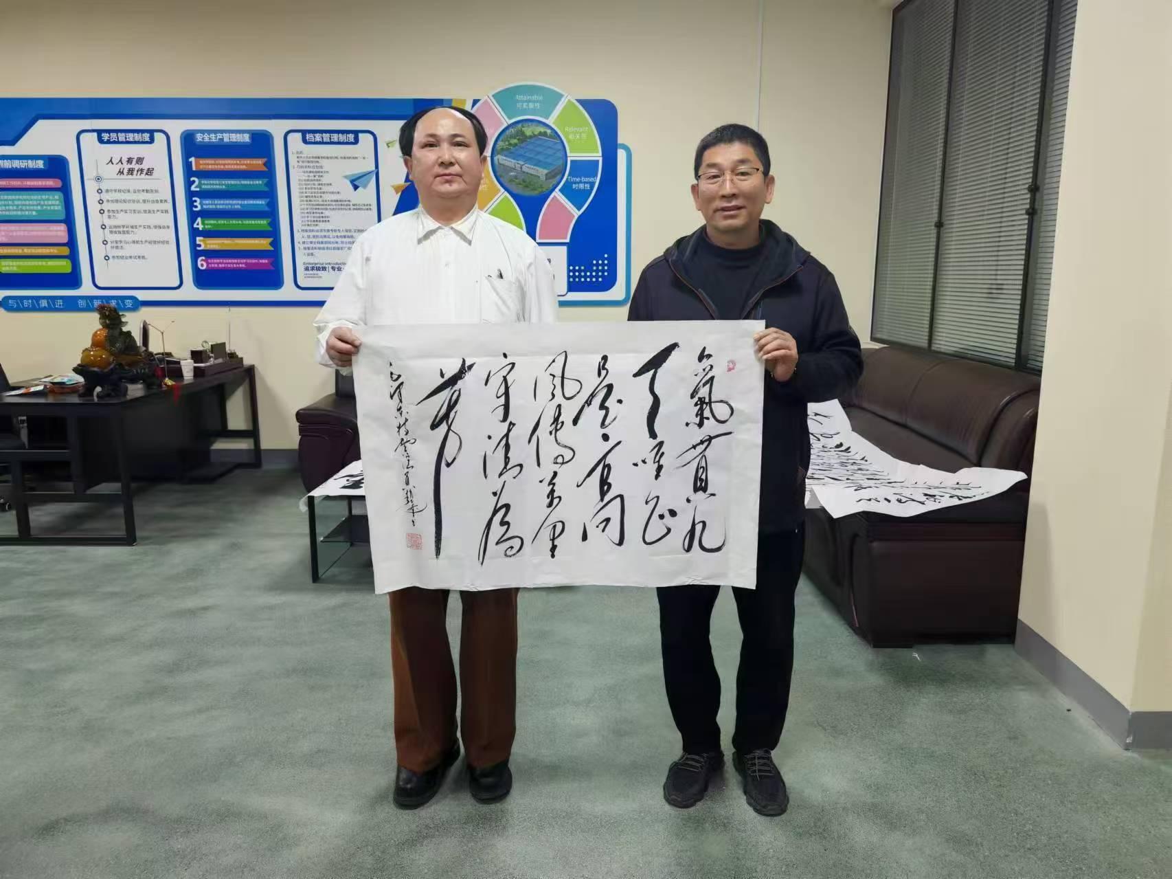 參觀結束后,趙士奎老師現場題寫了多幅書法作品贈予樺維公司。隨后,趙老師與現場員工進行了互動環節,他生動形象地再現了偉人的風范,并深刻宣講了偉人思想的崇高精神。趙老師期望這次傳統文化交流活動能夠融入企業文化建設之中,能夠成為樺維企業文化建設的一部分,激勵員工在工作中不斷追求卓越,同時也為企業的整體環境增添文化氛圍。