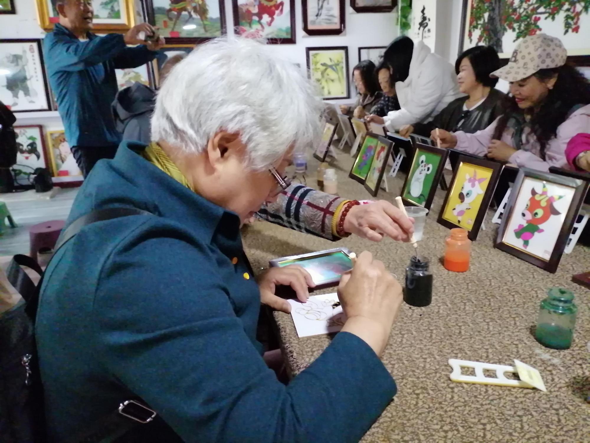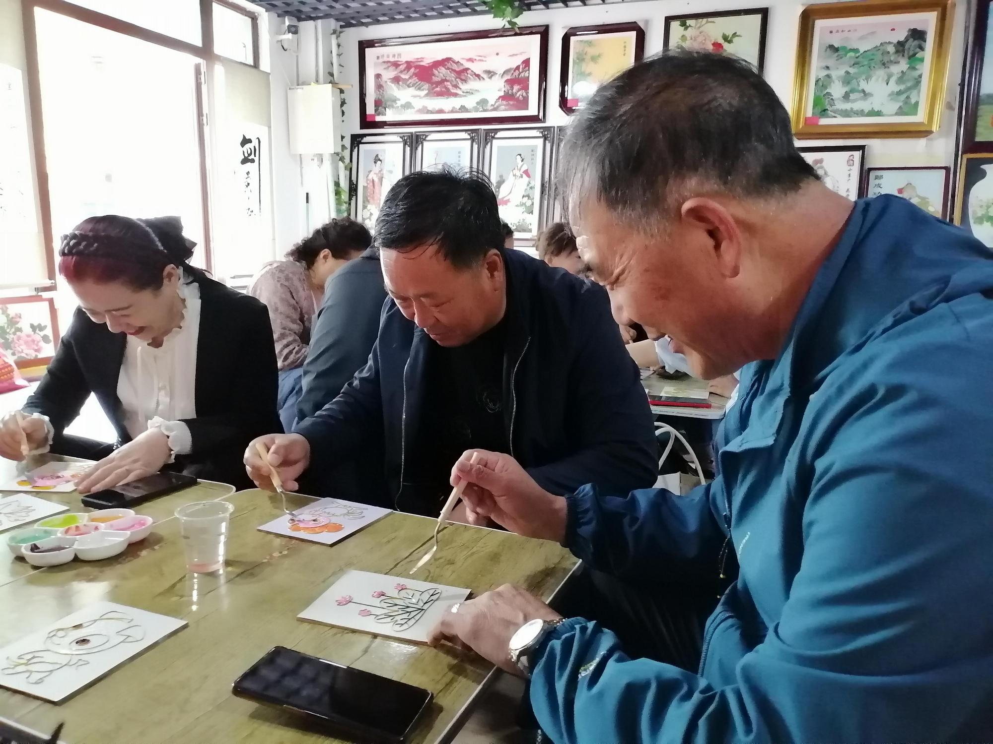 活動現場開放非遺工坊體驗區,由省級工藝美術師指導參與者完成掐絲點藍等核心工序,制作完成的砂藝作品經博物館免費裝裱后贈予創作者。