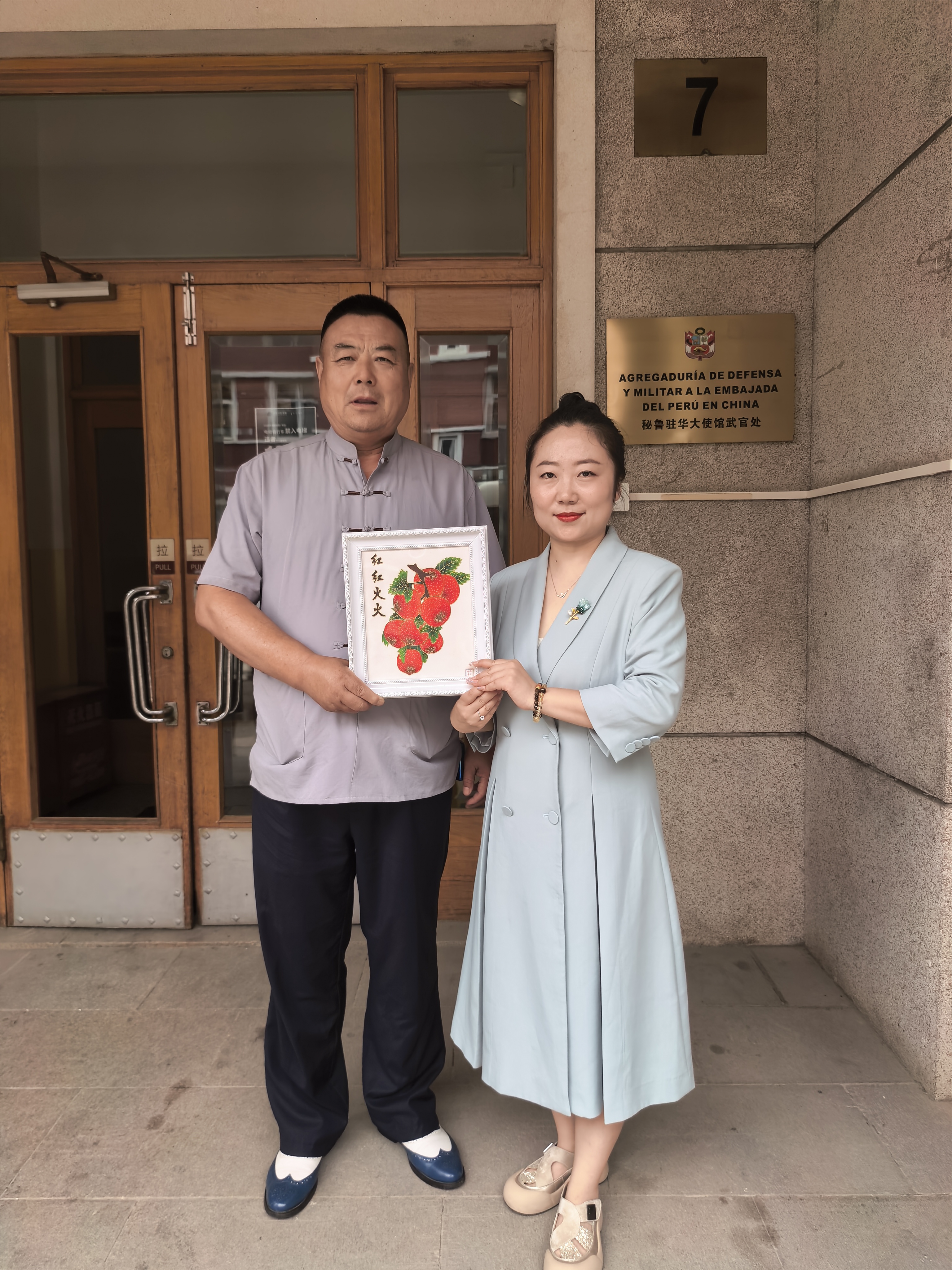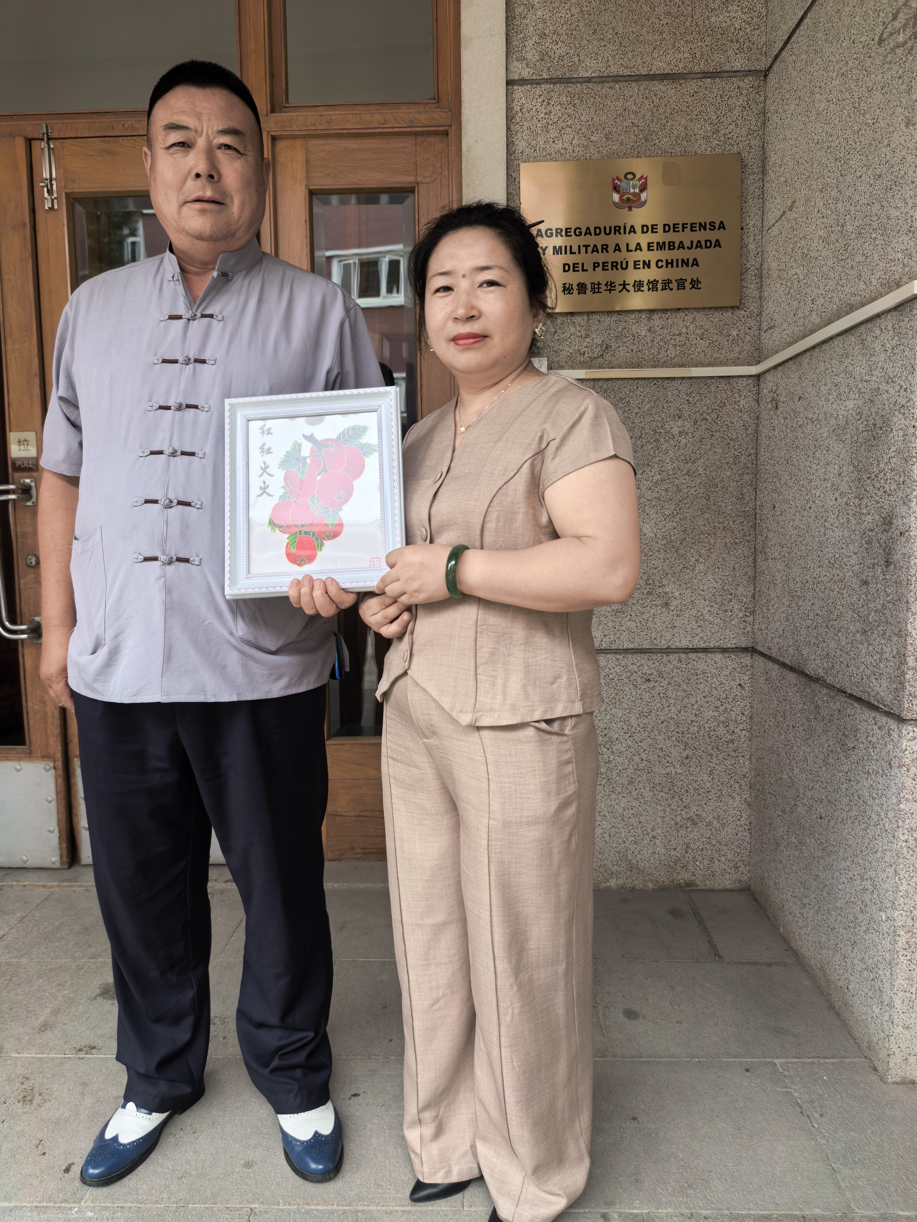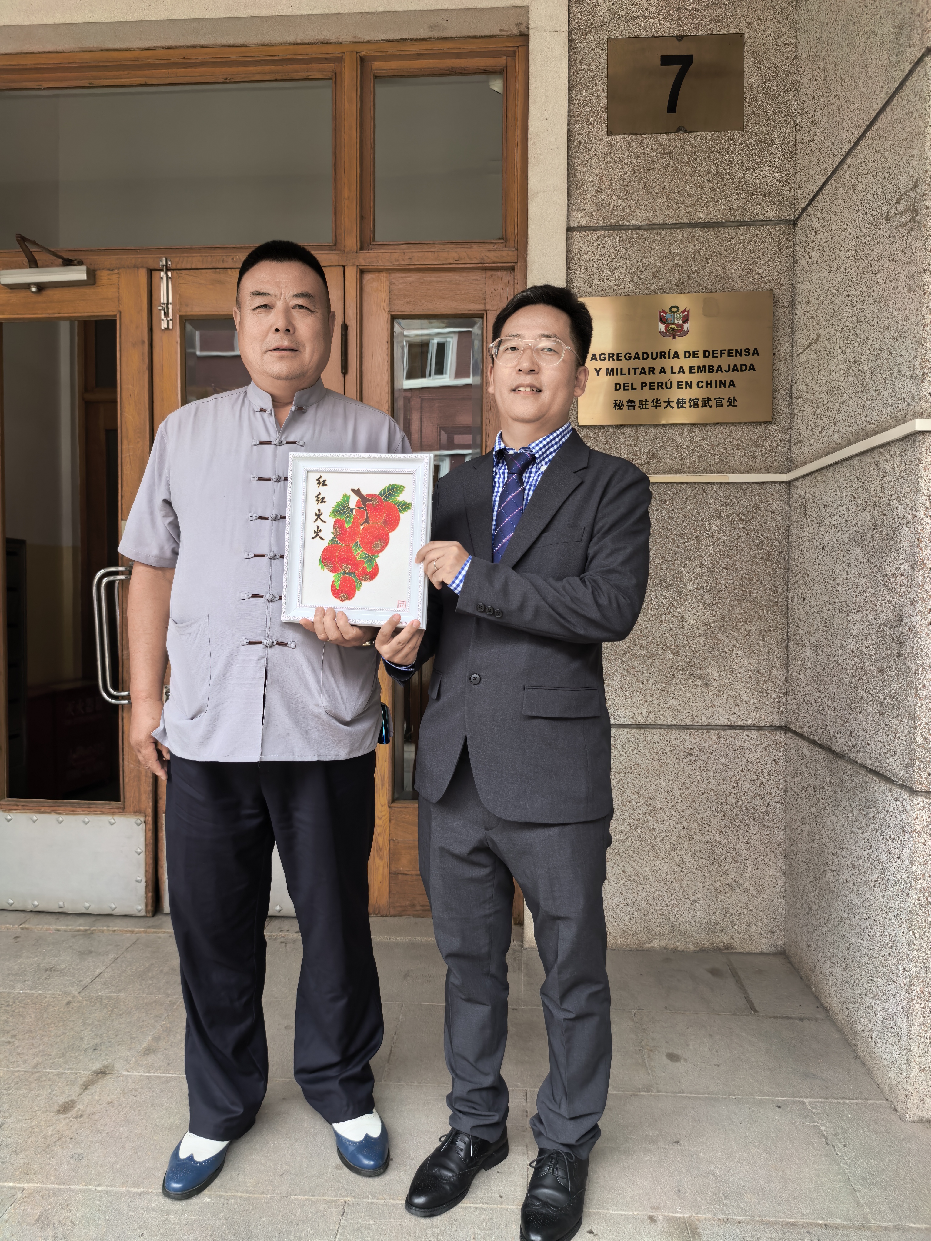 秘魯駐華大使館國防兼陸軍武官處大使對鄭鐵軍先生的來訪表示了熱烈歡迎并給予了熱情接待。在親切友好的交流氛圍中,鄭鐵軍先生闡釋了選擇《紅紅火火》作為贈禮的深刻寓意。他表示,作品以鮮艷的中國紅為主色調,寄托著對中秘兩國人民友誼長存、關系發展如同作品名稱一般“紅紅火火”、蒸蒸日上的美好祝愿。