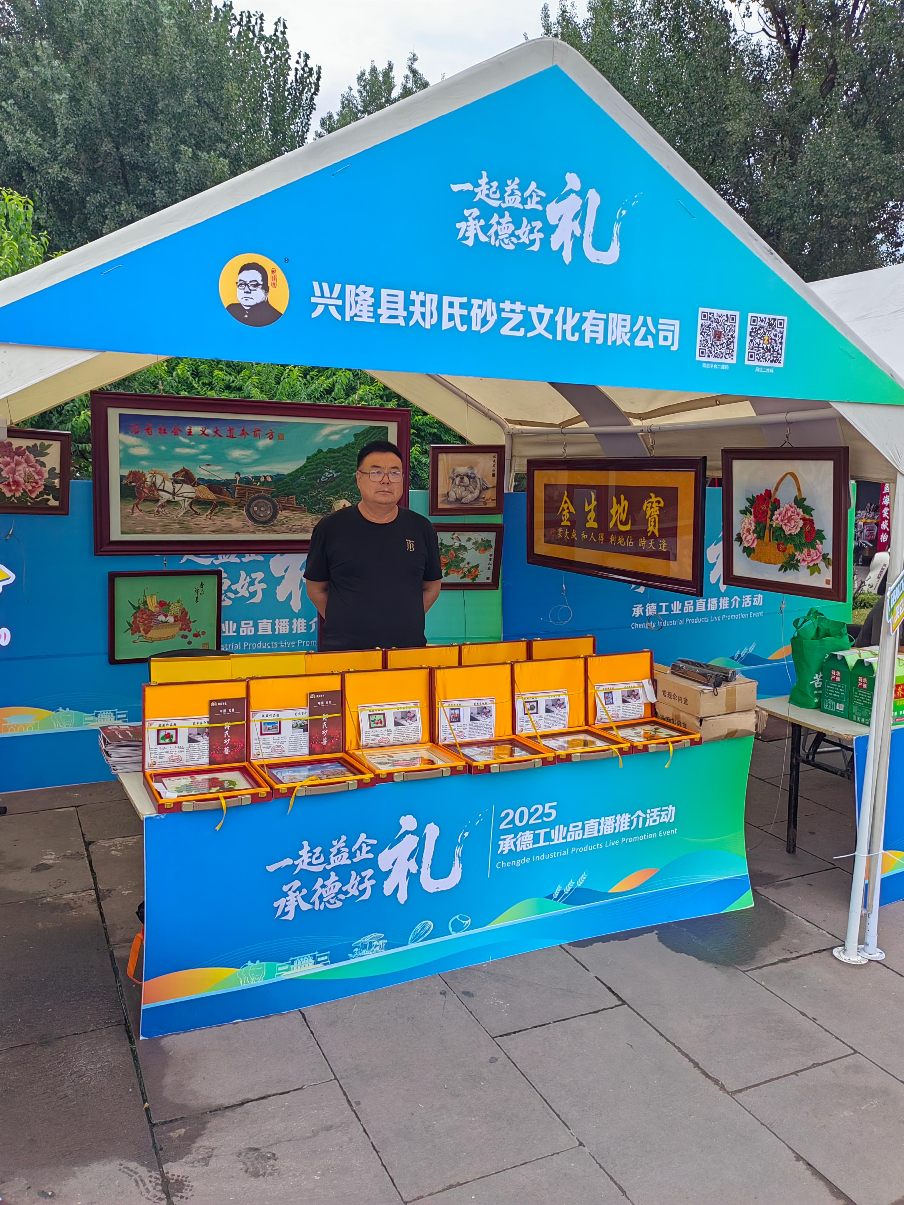 作為受邀參展單位,鄭氏砂藝在此次活動中展出了40余幅精美砂藝作品。展品包括鄭氏砂藝十二生肖系列、承德風光系列和興隆風光系列。在主辦方的統一組織下,鄭氏砂藝通過線上直播與線下展出相結合的方式,向廣大觀眾和網友展示了其獨特的藝術魅力。